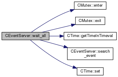 References CMutex::enter(), CMutex::exit(), CTime::getTimeInTimeval(), search_event(), and CTime::set().