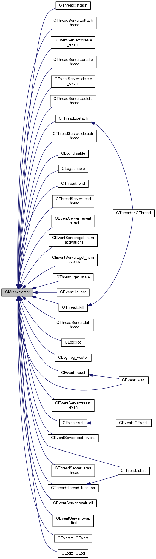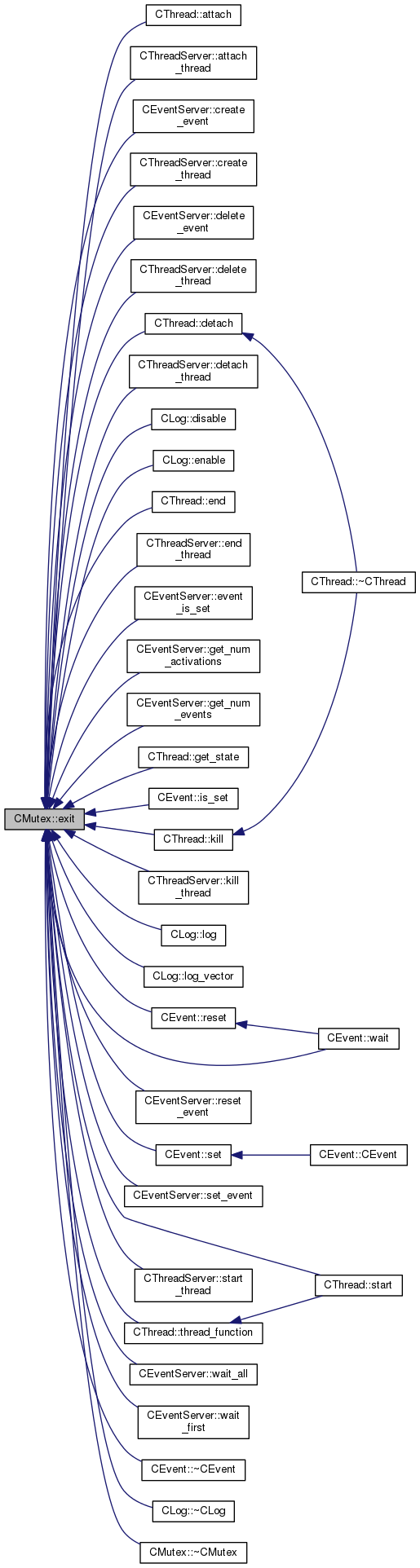 Referenced by CThread::attach(), CThreadServer::attach_thread(), CEventServer::create_event(), CThreadServer::create_thread(), CEventServer::delete_event(), CThreadServer::delete_thread(), CThread::detach(), CThreadServer::detach_thread(), CLog::disable(), CLog::enable(), CThread::end(), CThreadServer::end_thread(), CEventServer::event_is_set(), CEventServer::get_num_activations(), CEventServer::get_num_events(), CThread::get_state(), CEvent::is_set(), CThread::kill(), CThreadServer::kill_thread(), CLog::log(), CLog::log_vector(), CEvent::reset(), CEventServer::reset_event(), CEvent::set(), CEventServer::set_event(), CThread::start(), CThreadServer::start_thread(), CThread::thread_function(), CEvent::wait(), CEventServer::wait_all(), CEventServer::wait_first(), CEvent::~CEvent(), CLog::~CLog(), and ~CMutex().